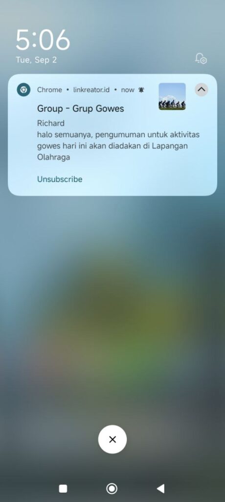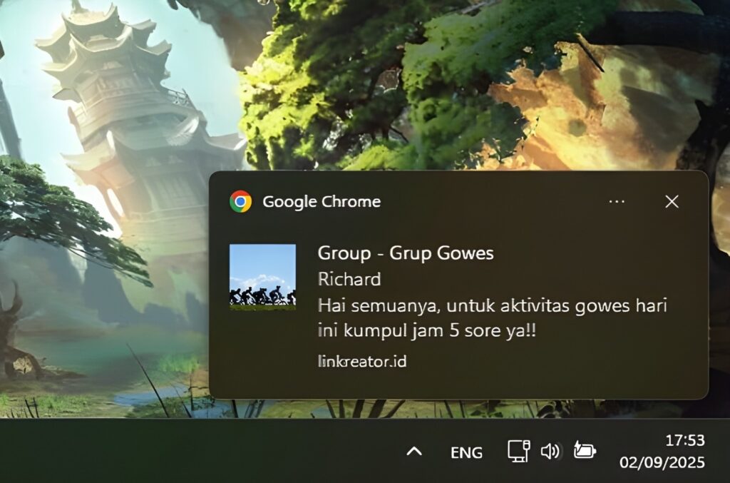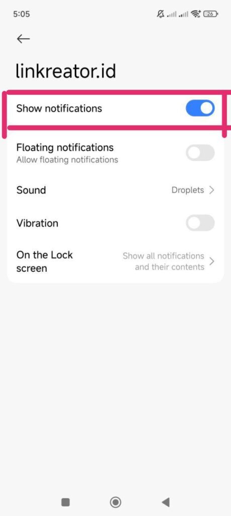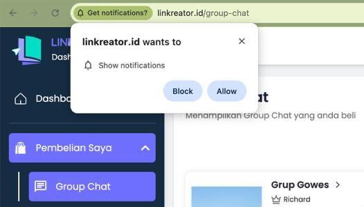 - Pastikan pengaturan notifikasi untuk website linkreator.id telah dalam kondisi menyala.