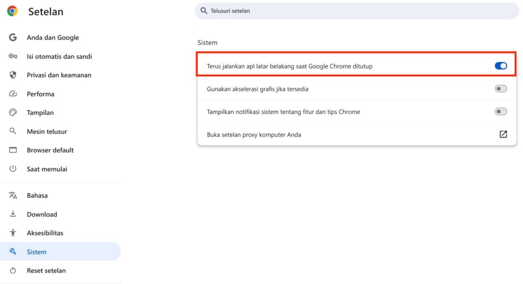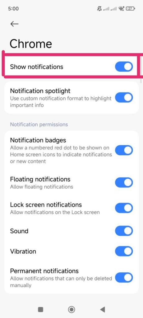 - Nyalakan Izin Notifikasi untuk aplikasi browser yang anda gunakan.